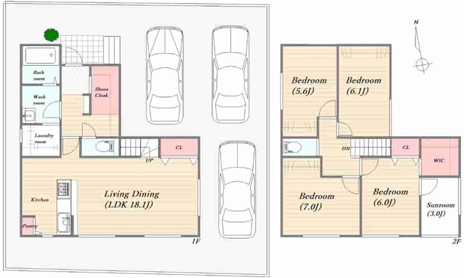 LDK18.1畳 1階 1室 洋室7畳 2階 1室 洋室6,1畳 2階 1室 洋室6畳 2階 1室 洋室5.6畳 2階 1室 |