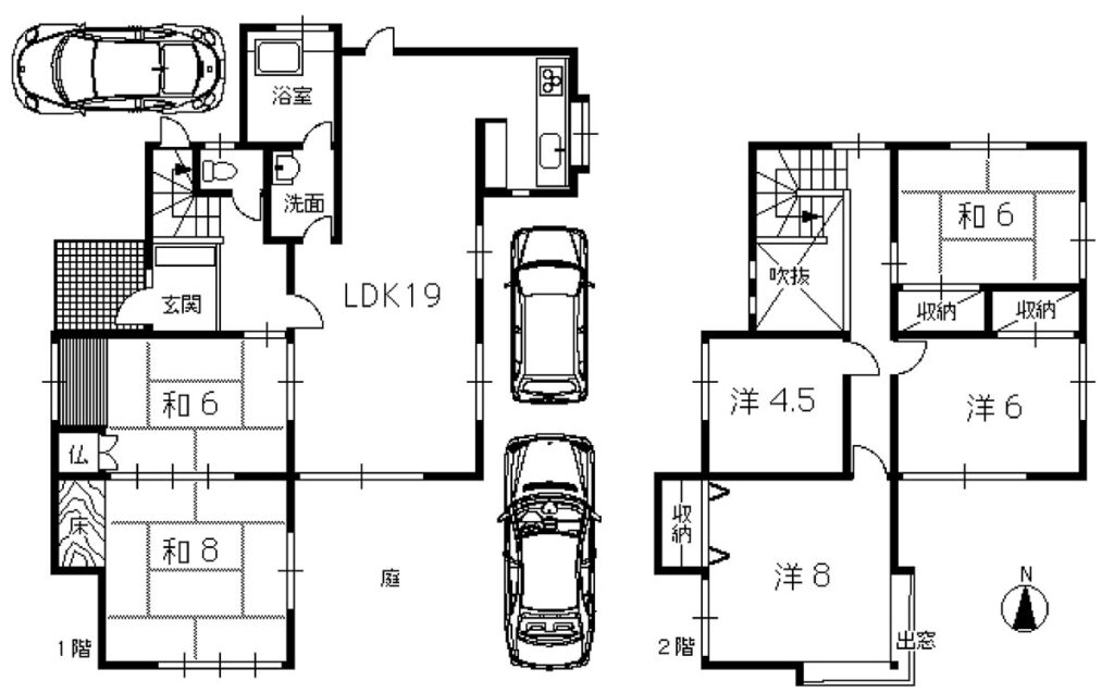 LDK19畳 1階 和室6畳 1階 和室8畳 1階 洋室8畳 2階 洋室6畳 2階 洋室4.5畳 2階 和室6畳 2階 |